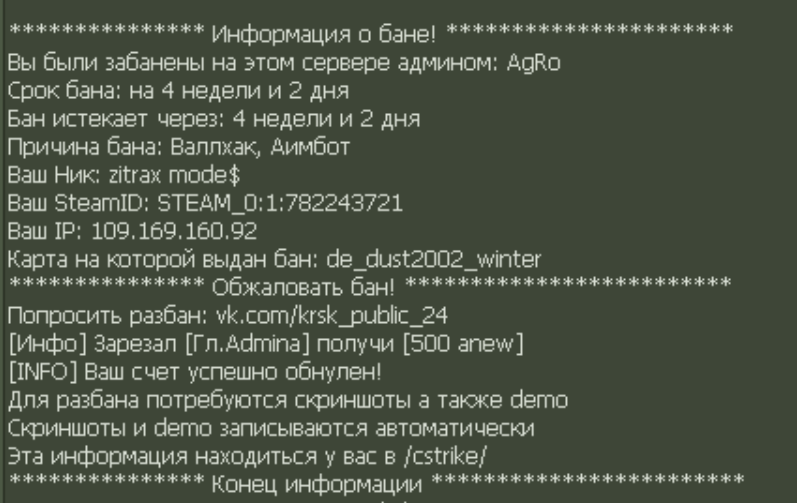Статус: Не разбанен